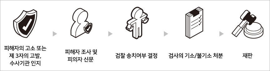 피해자의 고소 및 고발을 통해 경찰이 사건을 인지하고 수사한 뒤 검찰에 송치하면 검사의 보강 수사가 이루어집니다.